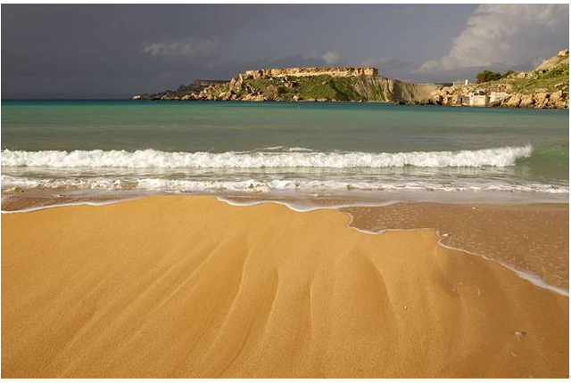 火山灰以及周围岩石中的金色石灰石,共同造就了桔黄色的沙子,无数沙子汇聚在一起便形成了马耳他戈佐岛的朗姆拉•艾尔-哈姆拉湾与圣布拉斯海滩。这些桔黄色沙子给人一种无边无际的感觉,它们来自于构成戈佐岛的岩石。