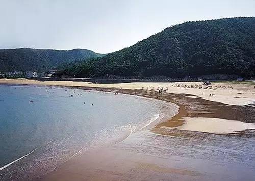 位于内九龙山风景区,背依青山,南面大海,三面环山,形似新月,沙滩长1500米,沙质坚净,它的沙是铁板沙,正因为有这个特点,夏日里前来游泳嬉玩的人多如牛毛,有的在捡拾海螺,挖着泥蟹,有的在追逐浪花,还有的静静地躺在沙滩上,看蓝天白云,听汹涌涛声。