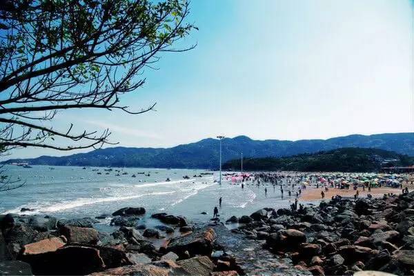 位于象山县城东南,沙滩多达六个,而且滩滩相连,穿成一线,南北长5公里,所以它称为华东地区最大的陆岸沙滩。曲折的港湾、美丽的岛礁和多处岬角、沙滩,以及气势磅礴的海蚀地貌,构成一道美丽而和谐的风景线。沙质细纯柔和,游客既可下海击浪,又可登山观海、听潮。