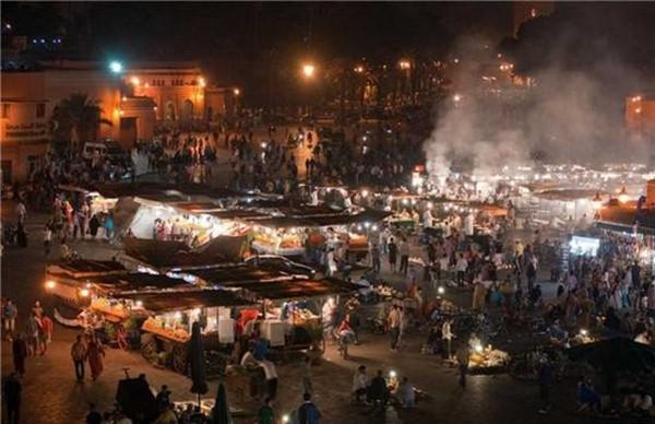 马拉喀什的美食结合了法国,非洲和中东口味。白天,边走边品尝当地的摩洛哥肉丸(Kefta)和辣香肠(mergez)。晚上,可以安静的坐在豪华的博寻(B -Zin)餐厅享用无与伦比的晚餐。