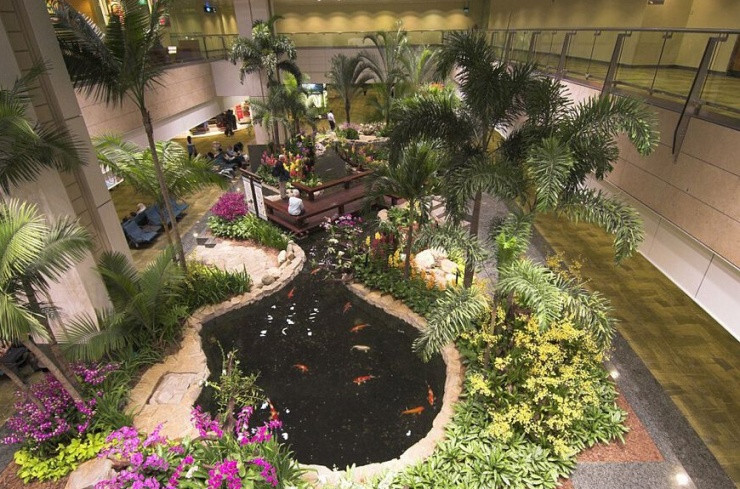 这座世界上最美的机场,拥有典雅精致的室内园艺,假山、溪流和各种珍奇花卉。至于孩子们,机场里面建有世界上最高的滑滑梯供孩子们玩耍,并且只要持有机场收据就可以免费玩耍。