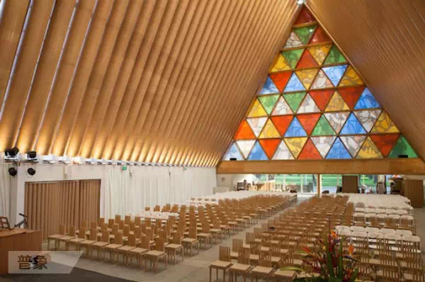 芮氏大地震摧毁了纽西兰基督城大教堂,为了信徒们,政府便兴建起一座暂代性的纸教堂,听说耐用50年,由日本纸板建筑大师坂茂设计。