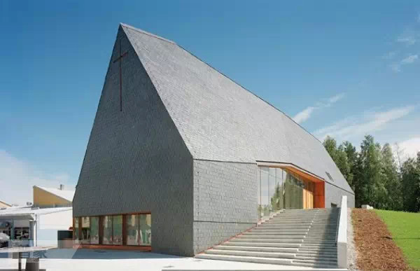 教堂坐落于Kuokkala广场正中央,教堂外部的石材给人以冰冷的感觉,而内部则以温暖的木质调为主。
