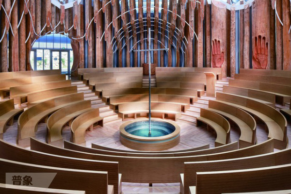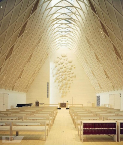 位于韩国调加平郡,教堂中央大厅带给人万丈光芒的感受。
