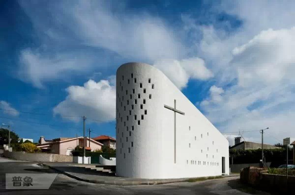 坐落Canedo小镇,这座时尚现代的小教堂墙面上以深深的点窗与十字窗装点,白天室内光影斑驳,夜晚再把光线还给夜空。