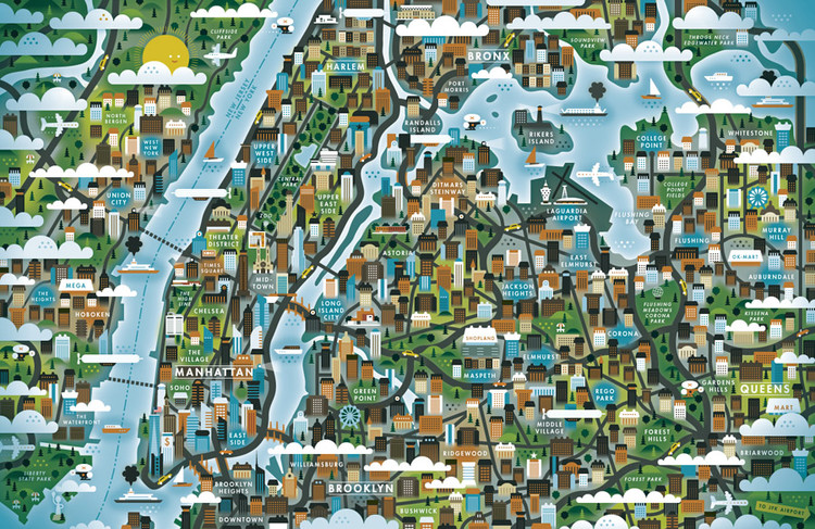 他们的特色彩色插图广泛的出现在小册子和杂志上,那顽皮古怪的风格充满流行元素,却又用流畅的复古线条表达。他们最为出名的系列恐怕就是他们的城市或者国家地图了。这些卡通幽默的地图给人美好和舒适的感受。那些度假胜地通过他们的地图看上去更加简明和妙趣横生。不过他们好像不在接受地图类的工作了,希望他们改变主意喲。