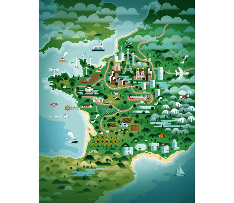 The map of France (for Weekend Knack Magazine), Courtesy of KHUAN+KTRON. 法国