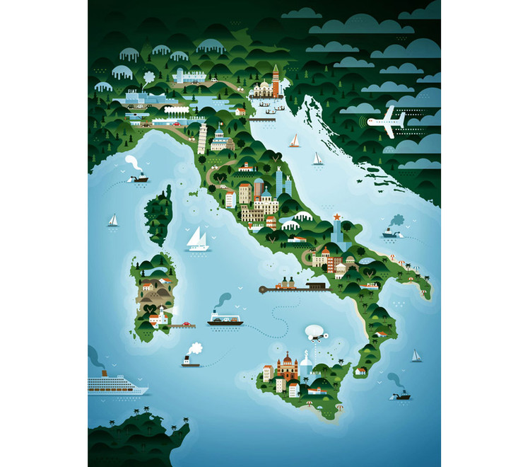 The map of Italy (for Weekend Knack Magazine), Courtesy of KHUAN+KTRON. 意大利