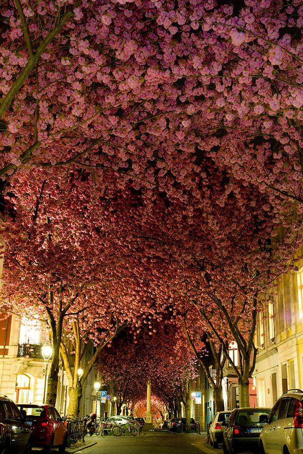 德国波恩的樱花隧道是一条非常宁静的街道。每年的春季,两旁樱花盛放,形成的道路景象有别于樱花之国日本,少了一丝禅意,却多了一缕欧式的浪漫情怀!樱花灿烂下,只为在最美的时刻遇见最美的你!波恩的樱花隧道共有两条,位于赫尔斯特拉伯的樱花隧道最受游客追捧。樱花的花期通常在7到10天之间,具体取决于天气条件。