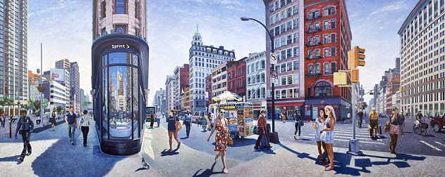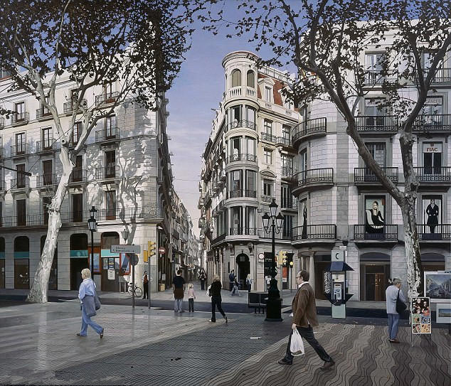 英国现实艺术家南森-沃尔什在过去的12年间,用画笔和刷子绘画了世界各地著名的旅游城市风景,包括纽约和巴黎等地,他的作品不仅结构完整,细节精巧,而且人物也栩栩如生,连当地人都有些分辨不清这到底是照片还是一幅画。由于作品复杂精致,他的一幅画价值可高达8万英镑(约合人民币77.6万元):