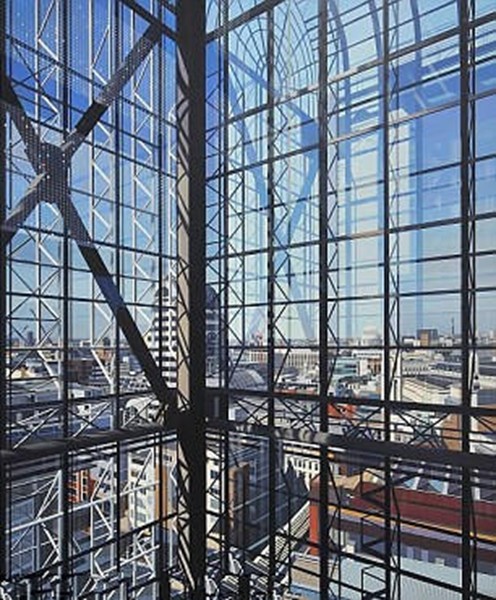 图为沃尔什画的伦敦的劳埃德大楼。