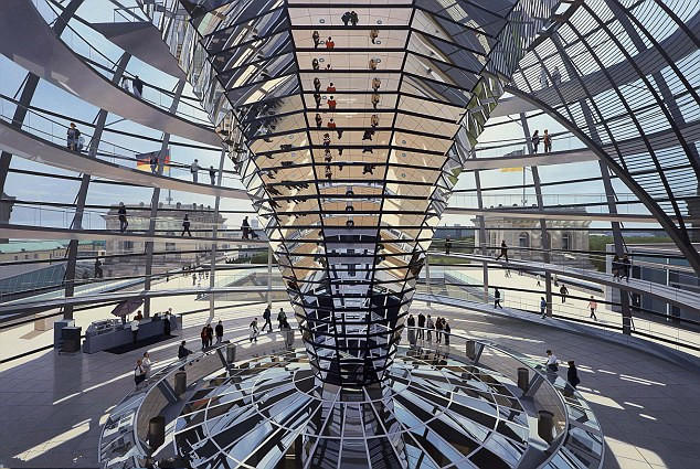 从外向内看,德国国会大厦的圆顶真是模样奇特。