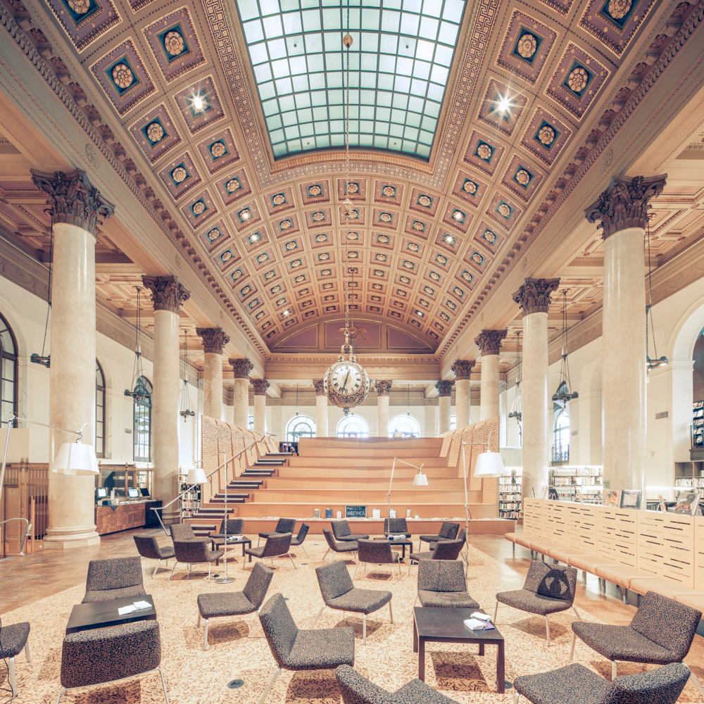 许多大型图书馆除了是知识宝库之外,建筑物本身已有上百年的历史。其中一些年代久远的装潢设计,一直保留至今,更具有观赏价值。法图摄影师Franck Bohbot,就走进这些图书馆,把这些华丽的建筑物一一拍进照片之中,制成作品集——House of Books。这些历史悠久的图书馆大多有很高的楼顶,配上古典的雕刻墙壁、支柱、天花,四周配上各种画作摆设作点缀。高高的书架屹立在两旁,人们便坐在这华丽的建筑中心看书,非常写意。