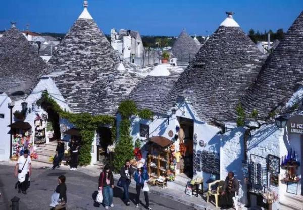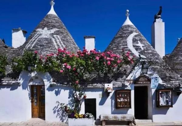 意大利的阿尔贝罗贝洛被人称为“天堂小镇”,这里保存着1000多座造型奇特的圆锥石顶屋(Trulli),1996年,这里也被评为了世界文化遗产。许多圆锥屋顶都带有十字架或某种怪异的图案标识。阿尔贝罗贝洛的意思是“美丽的橡树”,走在小镇的街道上,满眼所见都是白色的圆锥石顶屋,在蓝天的映衬下,就像是一个童话般的世界。