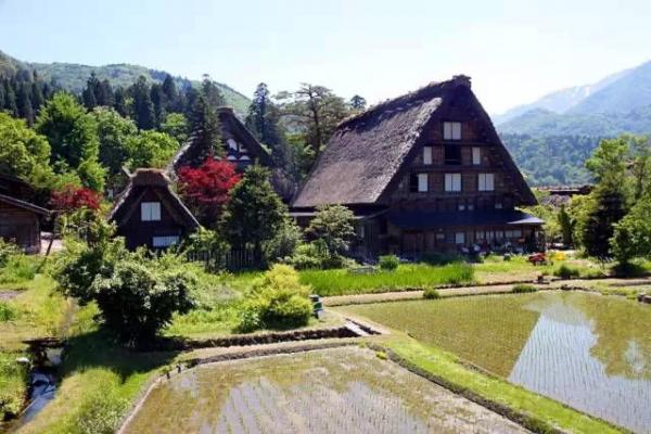 位于日本白川乡的荻町,拥有114栋合掌屋。溪水蜿蜒流过的约1公里长的河滨谷地上,大小不一、高矮不等的合掌屋错落有致地排列开来,情景蔚为壮观。合掌屋的屋顶外型犹如两只手掌合拢作揖,已有三四百年的历史。木屋屋顶设计成60度锐角的正三角形,可使屋顶最大限度地承载厚重的积雪,同时让过高的积雪自然滑落。利用就地取材的干草堆叠覆盖屋顶以及把合掌屋建成南北朝向,也是考虑到使木屋与山脉成垂直走向,借此阻挡顺着地势刮下来的寒风,并调节日照量,使木屋冬暖夏凉。