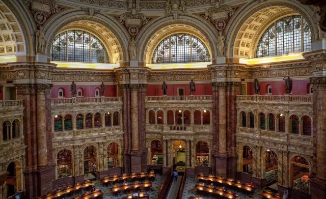 也许它的风格并不符合所有人的口味,但内部的装饰确实美得令人屏息。不过,这还不是全部:就连大理石支柱和雕塑都没被放过,全部漆成了木纹状。这个图书馆不仅是展示书籍的华丽舞台,它还有着全世界图书馆中最复杂的暗门。