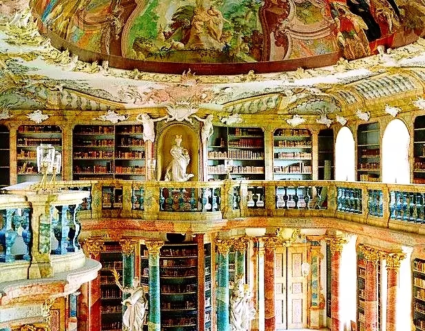 18世纪兴建了一些最奢华的图书馆,建于1742年的阿尔滕堡修道院就是其中之一。修道院宏伟的大厅极度奢华,用来彰显其藏书量。在48米长的大厅天花板上,铺满了精美的壁画,而其中最独特的要数“所罗门的审判”、“神的智慧”和信仰之光了。