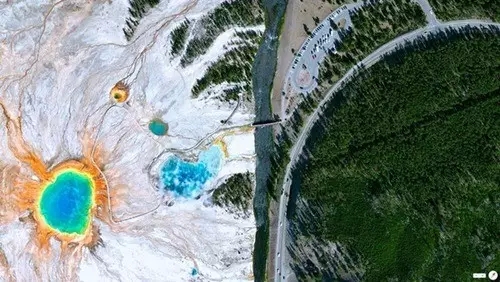 去美国就不得不提黄石国家公园中的世界第三大温泉。由于温泉中富含矿物质,有很多带有各种颜色的藻类和细菌,其泉水颜色会随季节更替而在绿色、黄色、红色等颜色中变化,堪称“外星”奇景。