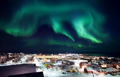 努克位于格陵兰西岸戈特霍布海峡口,是一个观察极光的好地方,冬季映衬着白雪十分美丽,吸引了无数探险家和游客前往。