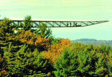 “无限空间”观景台位于威斯康辛州,它从观景峡谷向外延伸200英尺,距离谷底约150英尺。