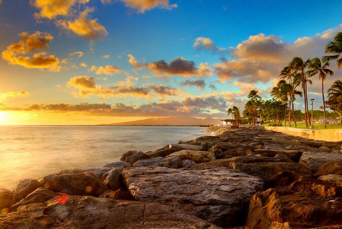 夏威夷是多数情侣梦想中的蜜月天堂,世界上很难找到像夏威夷这样一个令人身心完全放松的热带环境。威基基海滩大概是世界上最出名的海滩,也是多数游人心目中最典型的夏威夷海滩。这里可以划船、冲浪,夕阳西下之时,还可以沿着沙滩散步,慢慢欣赏落日的壮观景象。