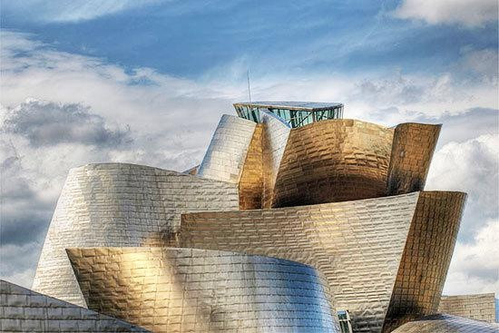美国建筑师弗兰克·盖里(Frank Gehry)的古汉根博物馆建在西班牙南部城市毕尔巴鄂。自1997开馆以来,一直是现代建筑中最具影响、最突出的建筑之一。博物馆钛金属做成的带状设计是为了纪念毕尔巴鄂的工业化,也是为了向弗兰克·劳埃德·赖特纽约的古汉跟博物馆致敬。