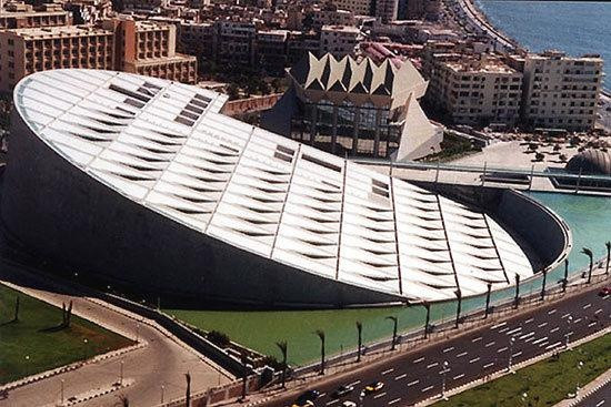 古埃及金字塔和新亚历山大图书馆使埃及有幸拥有世界上最古老和最现代设计中最好的建筑。它像一块倾斜的巨大铁饼,也像一个巨型的电灯开关。亚历山大港的海边图书馆是新千年首个完美设计。它于2002年建成,灵感源于公元前3世纪建成的,最伟大的古典建筑的亚历山大图书馆。该建筑的倾斜设计寓意它是地中海面升起的第二轮太阳。圆形大厅可同时容纳800万本书。