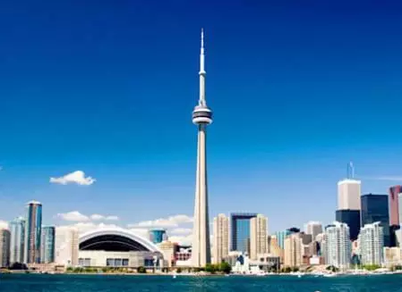 加拿大国家电视塔是多伦多的标志性建筑,也是世界第二高的通讯塔,塔内拥有将近一千七百多级的金属阶梯,塔高约等于于一百几十层楼的高度。