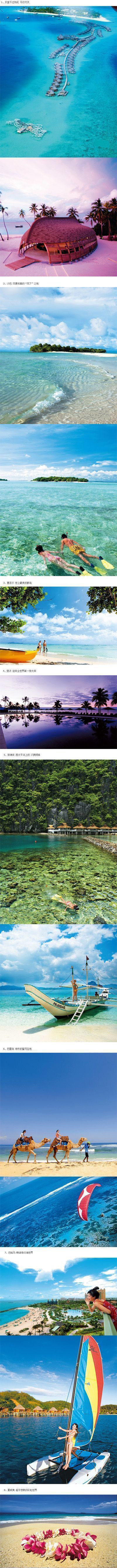 1、天堂不过如此 马尔代夫;2、沙巴 风景如画;3、塞舌尔 世上最美的群岛;4、斐济 迎来全世界第一缕太阳;5、菲律宾
