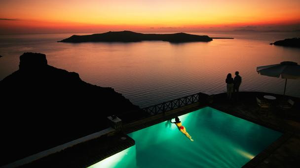 圣托里尼岛是希腊爱琴海群岛中众多个岛屿之一,海岛岸边餐厅、咖啡馆依断崖而建,白色的房屋层层相连,高低错落,形成一种独特的城市景观。圣托里尼岛风景如画,有最壮观的海景。傍晚游客可静静地坐在海滩上、酒吧里、游泳池旁欣赏这世界上最美的日落。