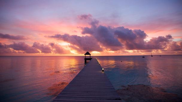 基里巴斯共和国是一个太平洋岛国。全国共有33个小岛,分成吉尔伯特群岛、凤凰群岛和莱恩群岛三大群岛,共有32个环礁及1个珊瑚岛,从其东部著名的圣诞岛,到最西部的巴纳巴,分布于赤道上3800公里的海域,拥有世界最大海洋保护区。基里巴斯是世界上唯一地跨赤道而又横过国际日期变更线交叉点上的国家。图中是傍晚在凤凰群岛观赏世界上最美丽的日落。