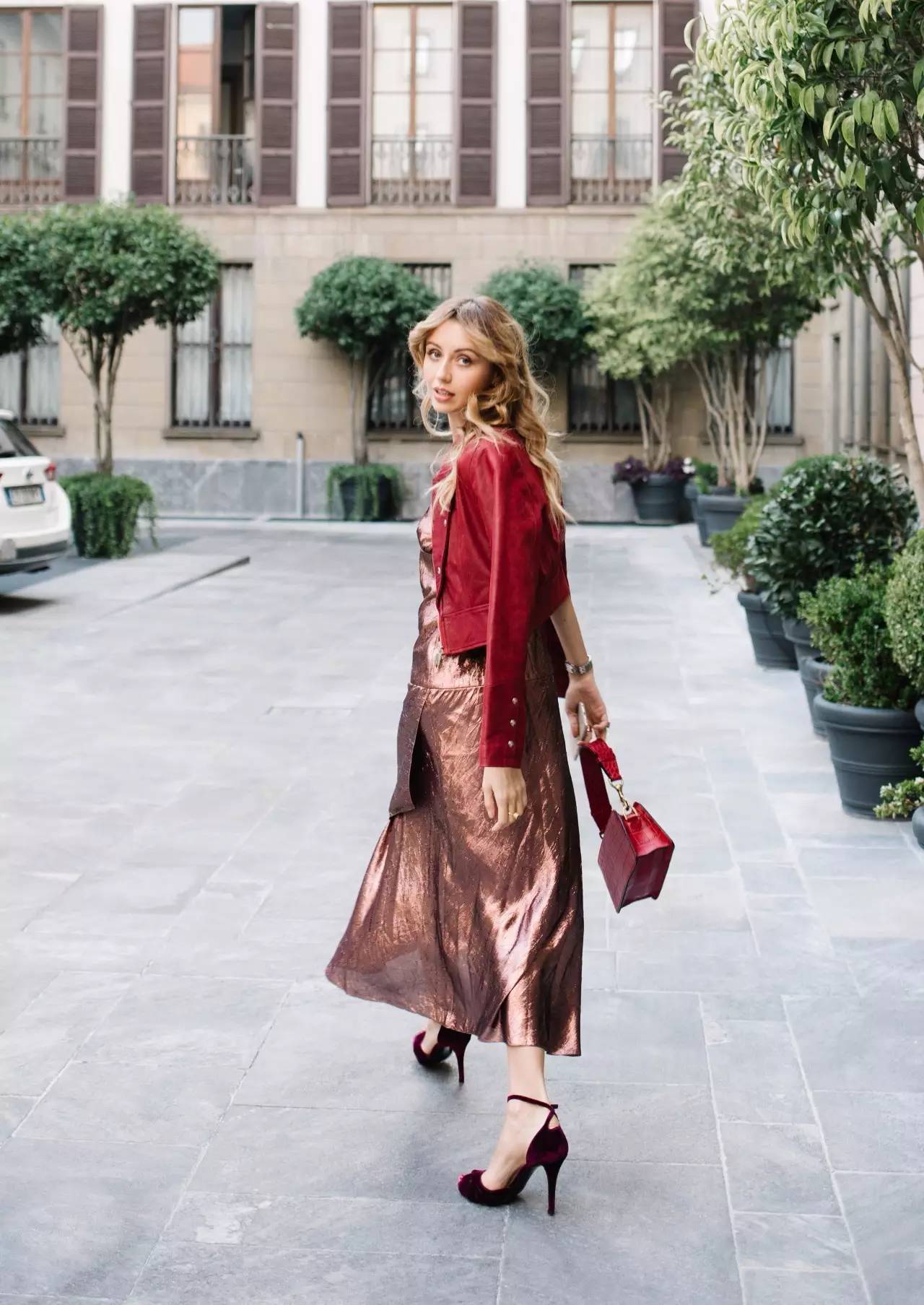 在城市地标性美景面前,两只紧握着的手,身着华服让人想入非非的美背,这个“背影女王”便是Nataly Osmann,牵着她的手的是她的摄影师老公Murad Osmann。