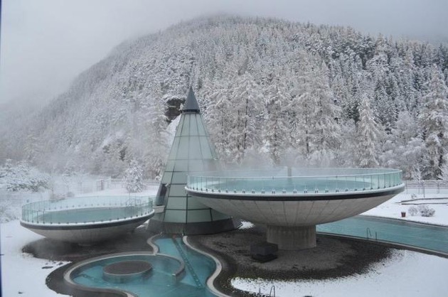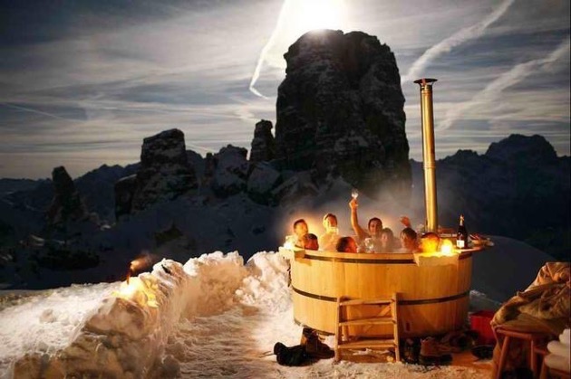 这个木桶形状的浴盆位于海拔2255米的积雪高原,坐在浴盆里能够看到意大利著名的美景。