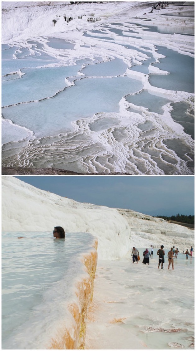 看了上面的图片,你应该会很清楚这个地方为什么叫棉花堡。这些天然的浴盆由白沙米黄石组成,吸引着来自世界各地的游客。