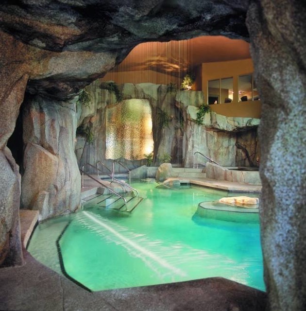 这个占地232平方米的浴池被设计成逼真的岩洞,热水中有天然矿物质。