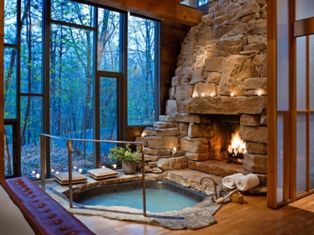 通常泡在澡盆里的人都很不想出来,因为外面很冷,所以Aviary Cottage很贴心的在浴盆外为你设计了一个火炉。
