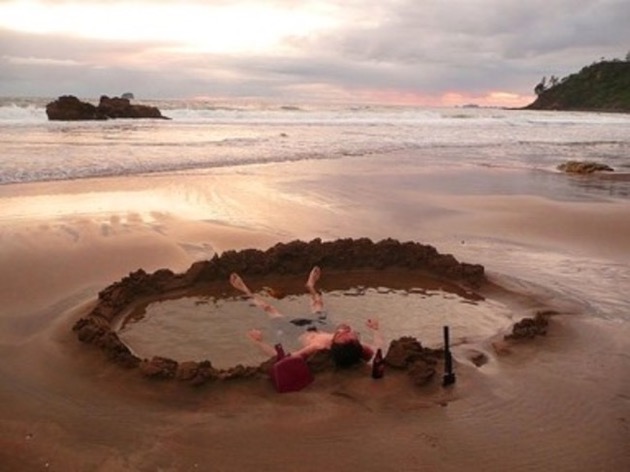 在低潮时,你在这里可以享受到天然的热水,只需要一张到新西兰的机票和一个铁铲。