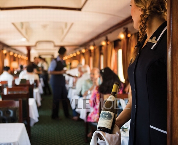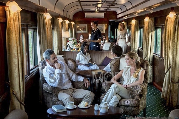 列车的奢华程度还可体现在贵宾无须为膳食担心,旅途中包含全部丰盛自助英式早餐,名厨料理的午晚餐(全套菜单),餐后贵宾们还可在酒廊和观景台交友畅叙。列车的尾部为全景展望车箱,车厢后端是甲板式眺望台,经常会有羚羊,鸵鸟一类的野生动物出没在铁路两侧的原野上。RohanVos先生会亲自在起始站台上迎送每位贵宾的到来。每位乘客也将获得Vos先生亲笔签名的独特证书来见证您乘坐过世界上最豪华列车。