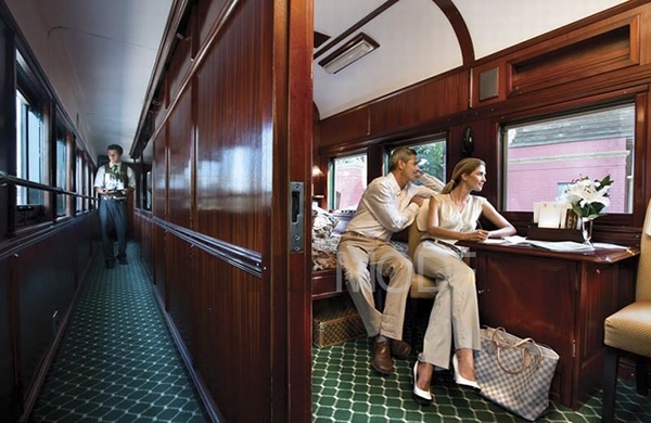 而在全车最顶级的16平方米皇家套房里,居然还有一个维多利亚式的爪足浴缸,客人可以一边洗澡,一边欣赏窗外的自然美景。躺在包房中24小时平放的特大号床上,你可以翻翻小说,来根雪茄,预习一下即将开始的下车游览安排。