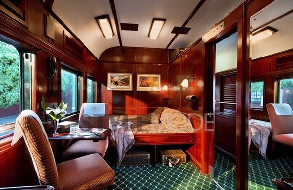 具有19世纪殖民风格的“非洲之傲”Rovos Rail列车最多只搭乘72名乘客,每节车厢最多只安排3个豪华套房,2个皇家套房。包厢内超过5扇大窗可以随时开启,能尽情欣赏窗外的非洲美景,而且,每个包厢都有独立的冷暖空调和卫浴设施。特别是皇家套房内有分开的淋浴和浴缸设施,可以在飞驰的列车上,躺在浴缸内欣赏美妙的落日。