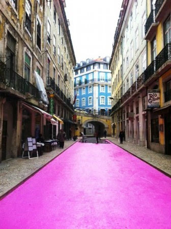 里斯本市计划将Cais do Sodré区域打造成24小时无休的城市创意与文化产业中心。在这个项目中,建筑师José Adri?o参与设计了步行街,并决定将街道漆成醒目的粉红色。此外街道沿边还安装了不少镶嵌板用于展示,将整个街道变成了一个室外的艺术画廊。