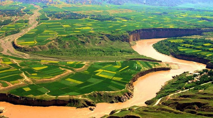 黄河,世界第五长河。全长5464公里,流域面积752,443 平方公里,它发源于青海省的巴颜喀拉山,呈“几”字形流经青海、四川、甘肃、宁夏、内蒙古、山西、陕西、河南及山东9个省,最后流入渤海。由于河流中段流经中国黄土高原地区,因此夹带了大量的泥沙,所以它也被称为世界上含沙量最多的河流。