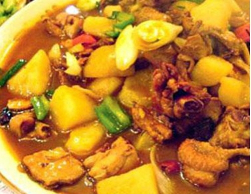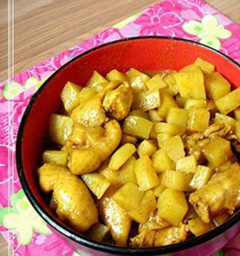 ②锅洗净放油,加热后放入切好的土豆、胡萝卜、洋葱翻炒,加水,大火煮十分钟后起锅(水要多加,大火煮食比较费水,容易干锅),见洋葱融化即可,加入咖喱(咖喱要预先用凉水调开),加入盐、糖,转小火煮五分钟即可。