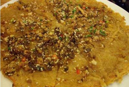 ②将炒熟的碎猪肉、盐、味精拌入土豆泥,做成饼状。
