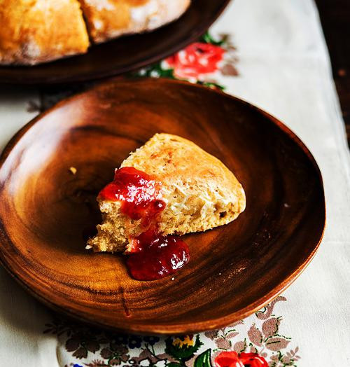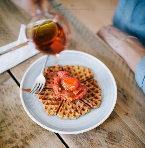 草莓酱配华夫饼