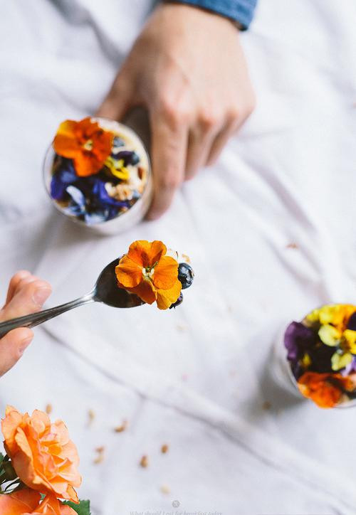 燕麦、柠檬酸奶和食用花