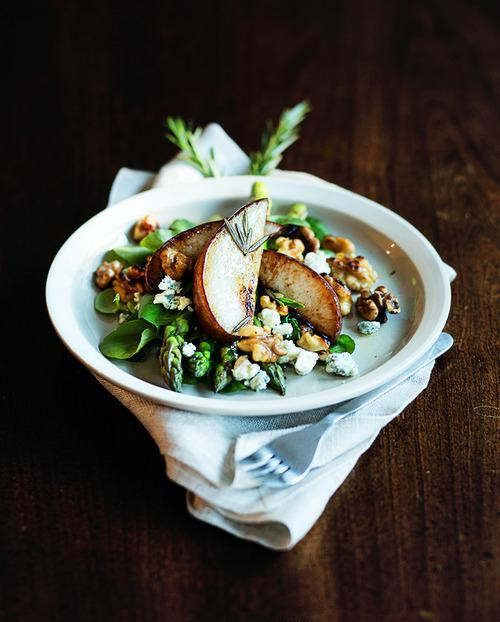 芦笋、核桃仁、蓝纹奶酪、梨子