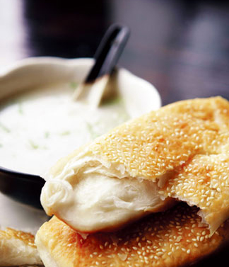 被这些当地无敌食材袭击过之后,那些肉们纷纷落到粥锅里,服务生很熟练地掌握着火候,同时还会介绍哪些是应季的。没有调味的海鲜们继续地鲜美着,一副随便你怎么吃我都很强的姿势。涮毕海螺、蛏子、海肠、小鲍鱼等等等等,那碗粥是一定要喝的,因为它要用来衬托这里自制的芝麻烧饼。那个长方形的烧饼入口即碎,芝麻又香,为一餐画了一个很大很圆的句号,所以是必吃的。