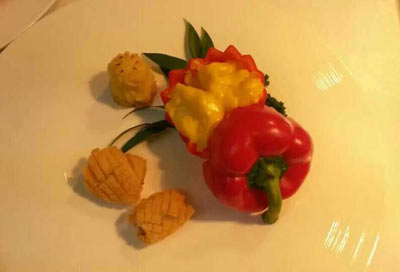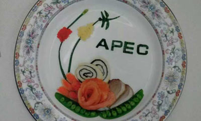 冷盘,也就是凉菜,作为开席菜要讲求突出APEC主题,细心的烹饪大师们用荤素搭配成一副美丽的画卷。从营养的角度来说,既体现了食物的多样化又实现了营养素的均衡。