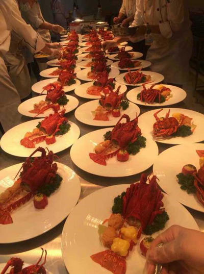 APEC会议上的饮食从数量上来说要恰到好处,不能出现吃剩浪费的现象,从质量上来说要讲求品质,凸显国宴之风,所以,选用翡翠龙虾在合适不过了。龙虾的营养密度高,蛋白质含量高达18.9%,高于大多数鱼虾类,脂肪含量极低,大约0.2%,并且所含的脂肪酸为不饱和脂肪酸,易于人体吸收。矿物质含量较其他鱼虾类都要高,尤其是锌、碘、硒等元素的含量丰富。据了解,国宴中的龙虾,在烹饪时会把肉壳分离,如此可以为宾客的就餐带来方便,避免出现不雅的吃相。